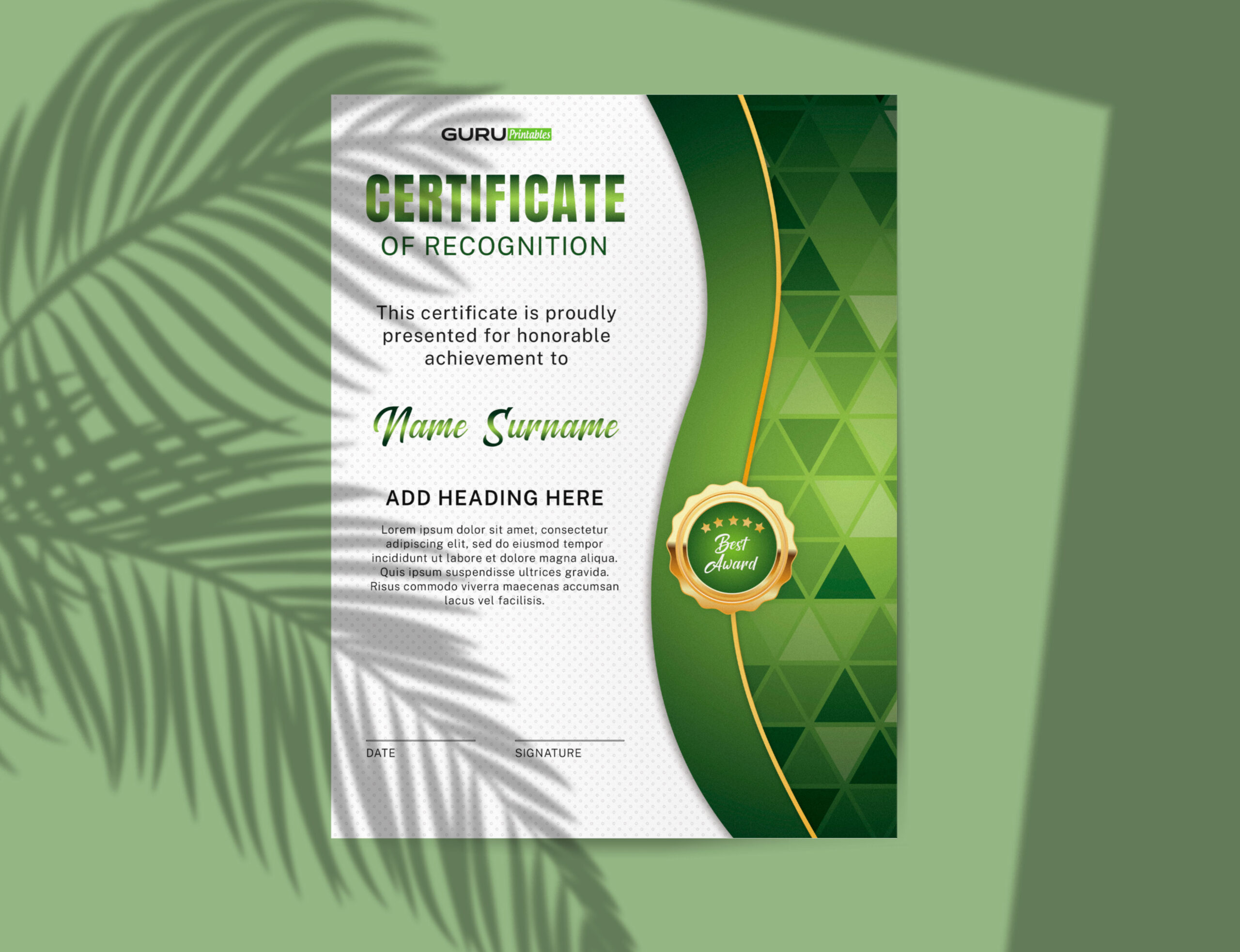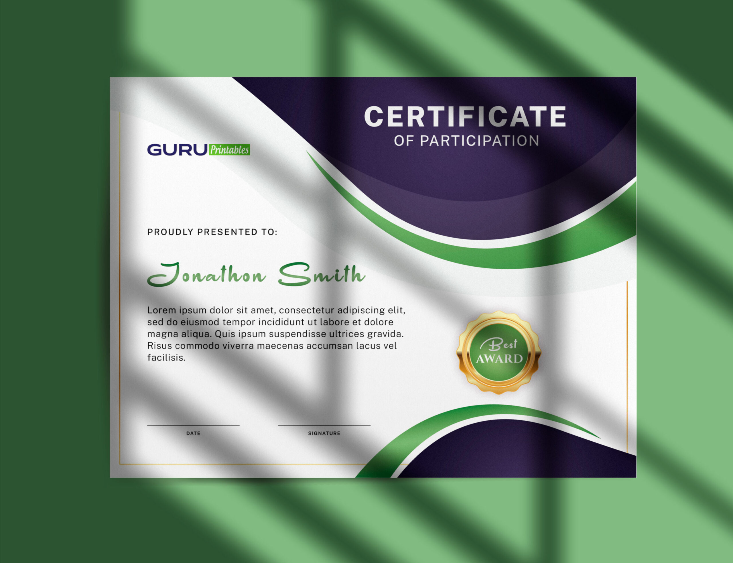 Check out this internship certificate template that has a creative design. This template will make your work easier and faster to prepare your company’s internship certificate to award those students or internees for completing a specific learning program. Elegant shapes in green and blue gradients look perfect with a light-grey background. Moreover, a beautiful award badge is attached which makes the appearance professional. This certificate template is easy to edit and customize using a PSD file so you can change the text, fonts, and colors to your preferences. Get it now as a freebie from the download button at any time.