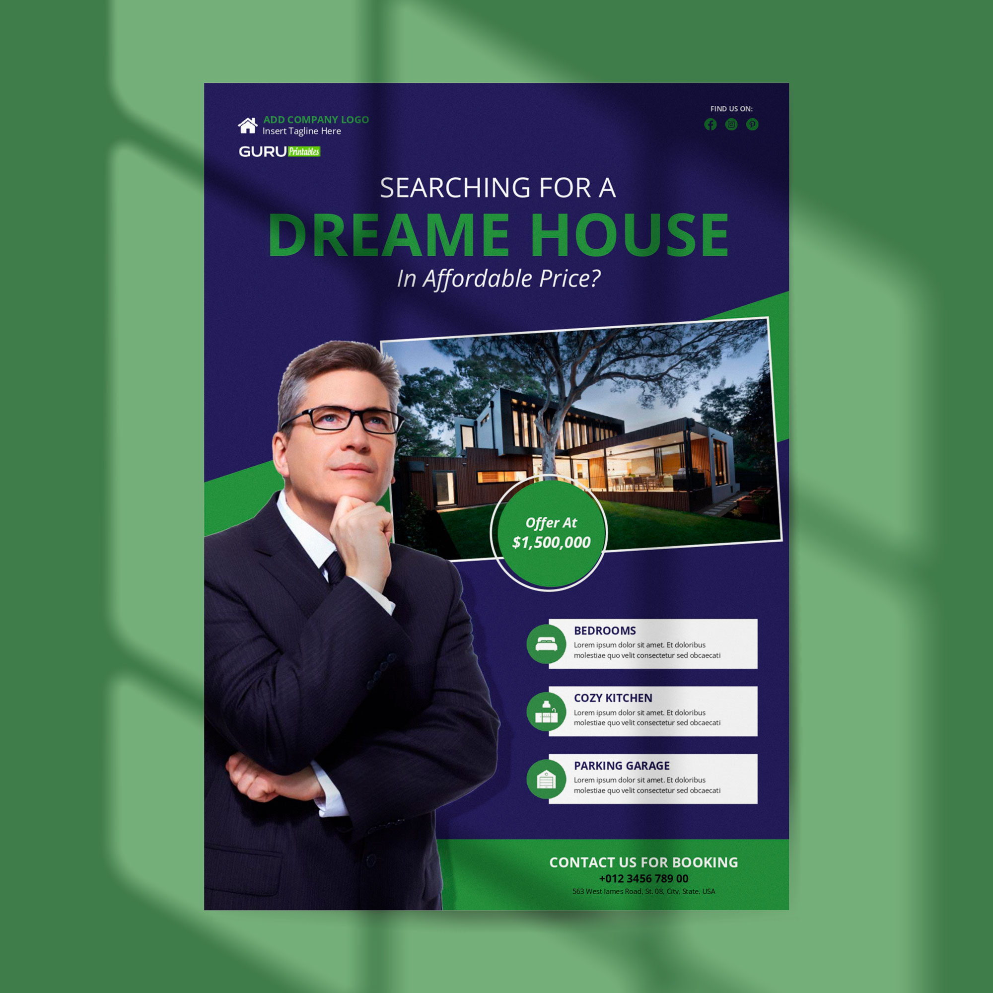 The layout of the flyer is simple and elegant and starts with a beautiful bold title “Luxury Home For Sale”. The text is minimal, with just a few key details about the property, such as the number of bedrooms and bathrooms, and the square footage. Moreover, you can replace the starting price and contact info at the bottom. Therefore, this flyer is the perfect choice for anyone looking to promote a modern and stylish home and is sure to catch the eye of potential buyers. Download this flyer for free in a PSD file format!